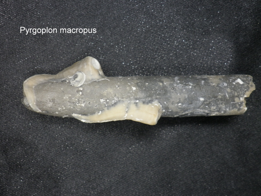 zwei Röhrenwürmer auf einem Belemniten